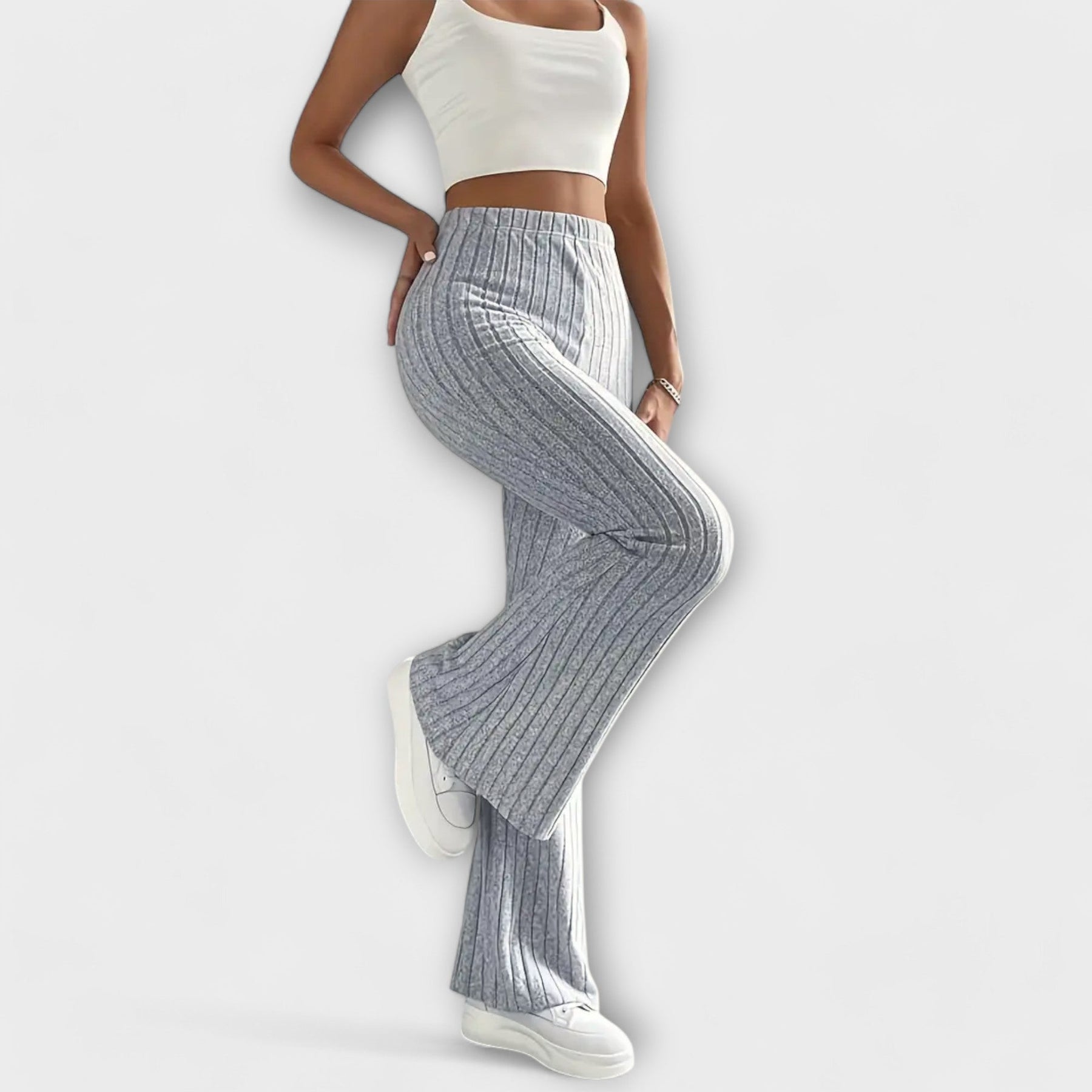 Luretta unisce il comfort moderno a linee femminili – il taglio svasato allunga otticamente la gamba, mentre la struttura discreta conferisce profondità al look. La vita elastica assicura una vestibilità piacevole, sia durante una passeggiata in città, in smart working o rilassati sul divano.